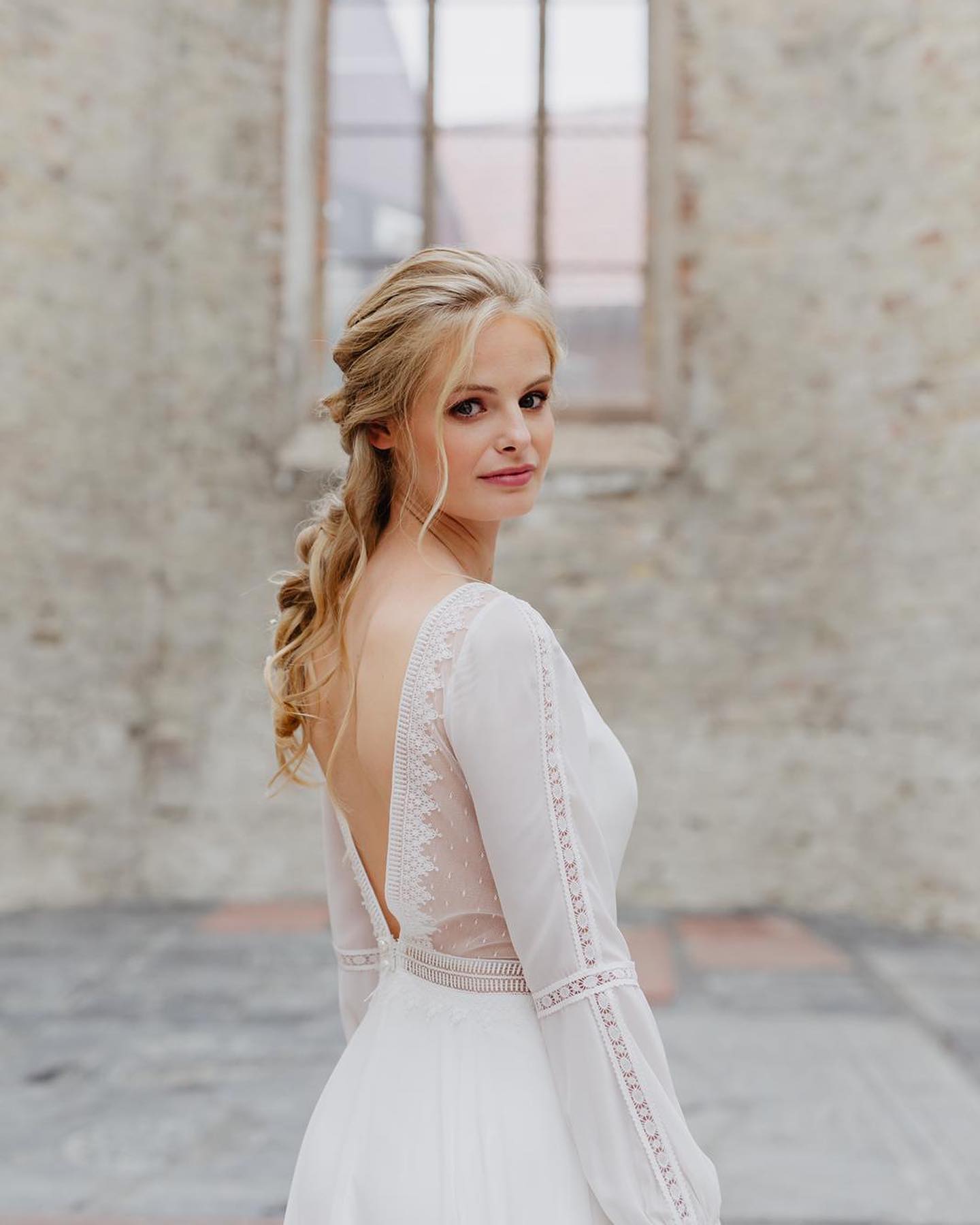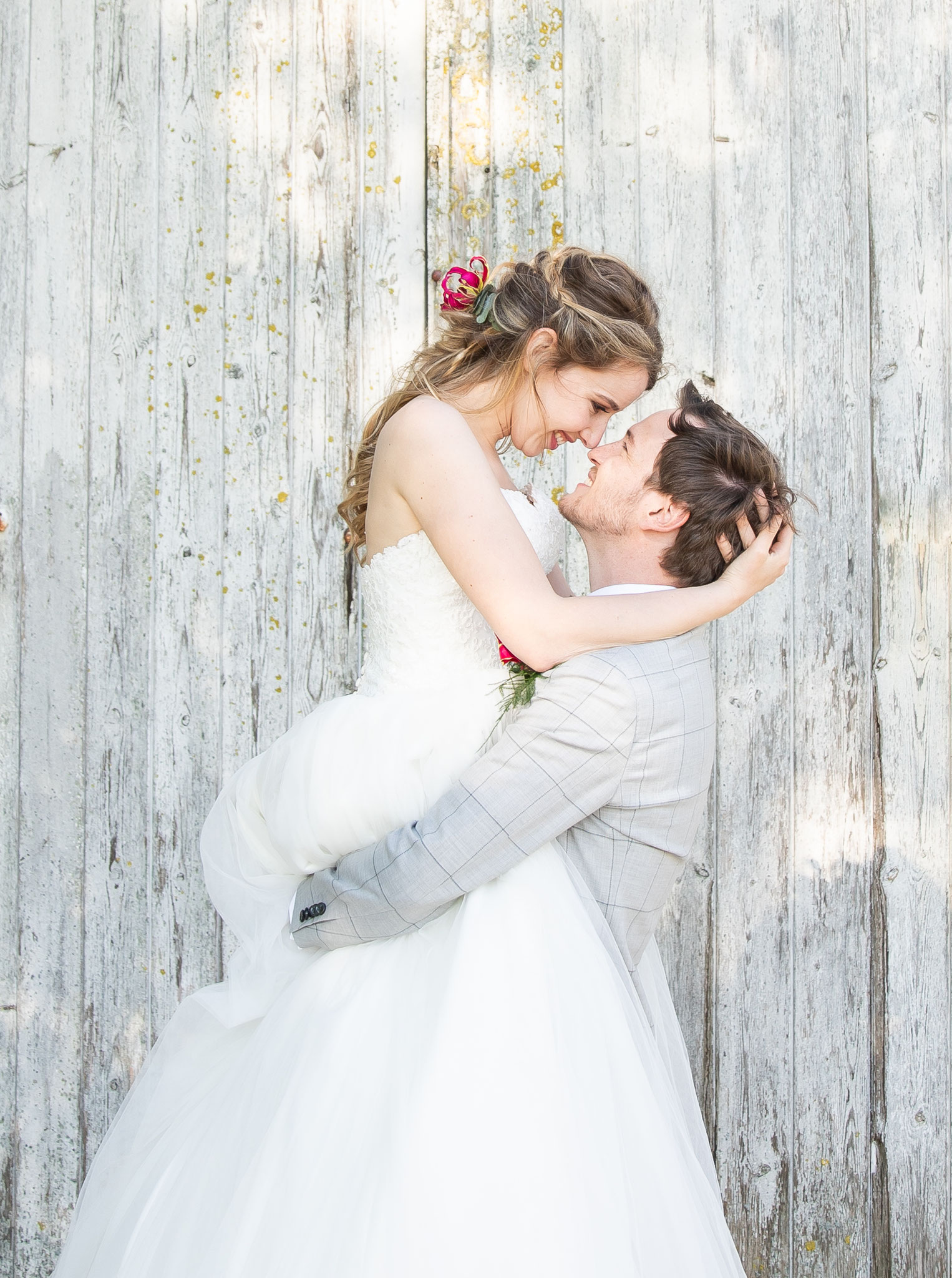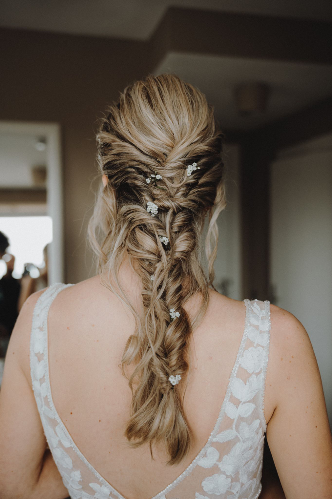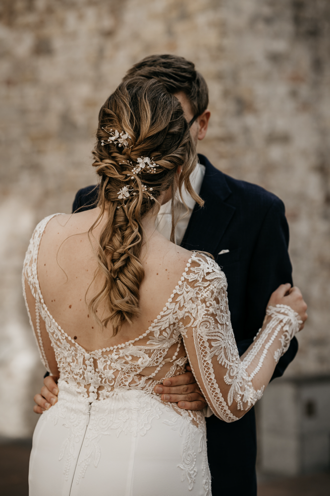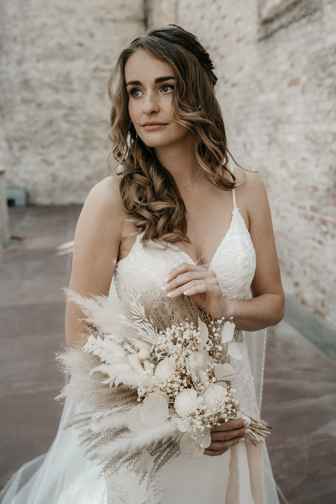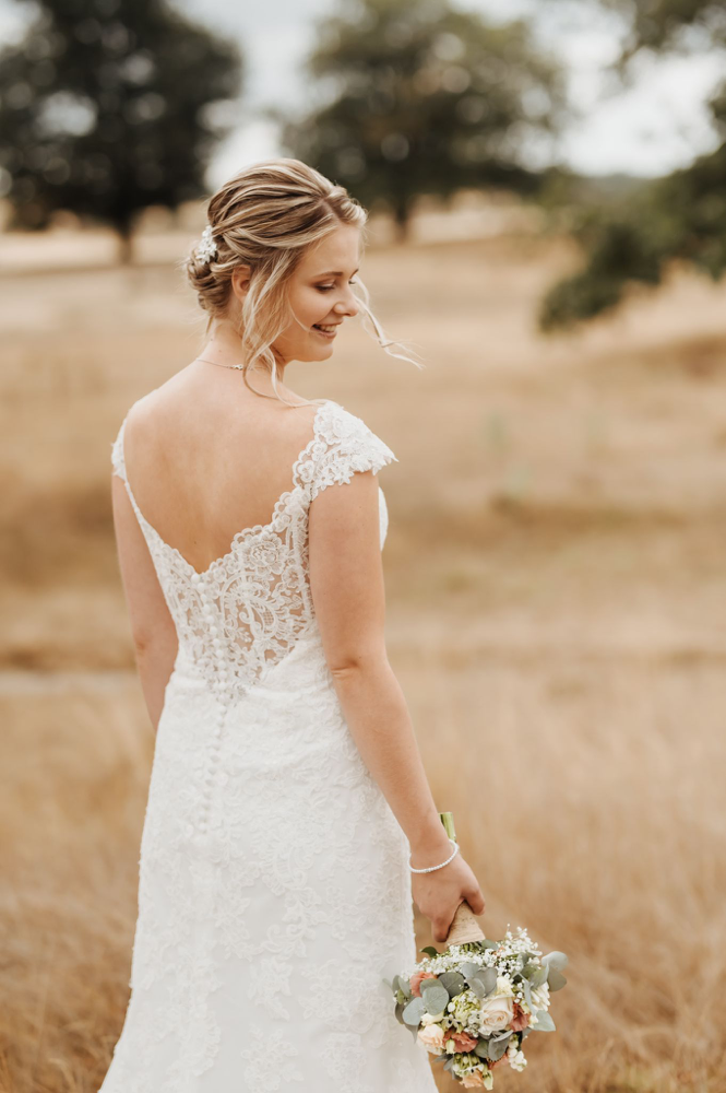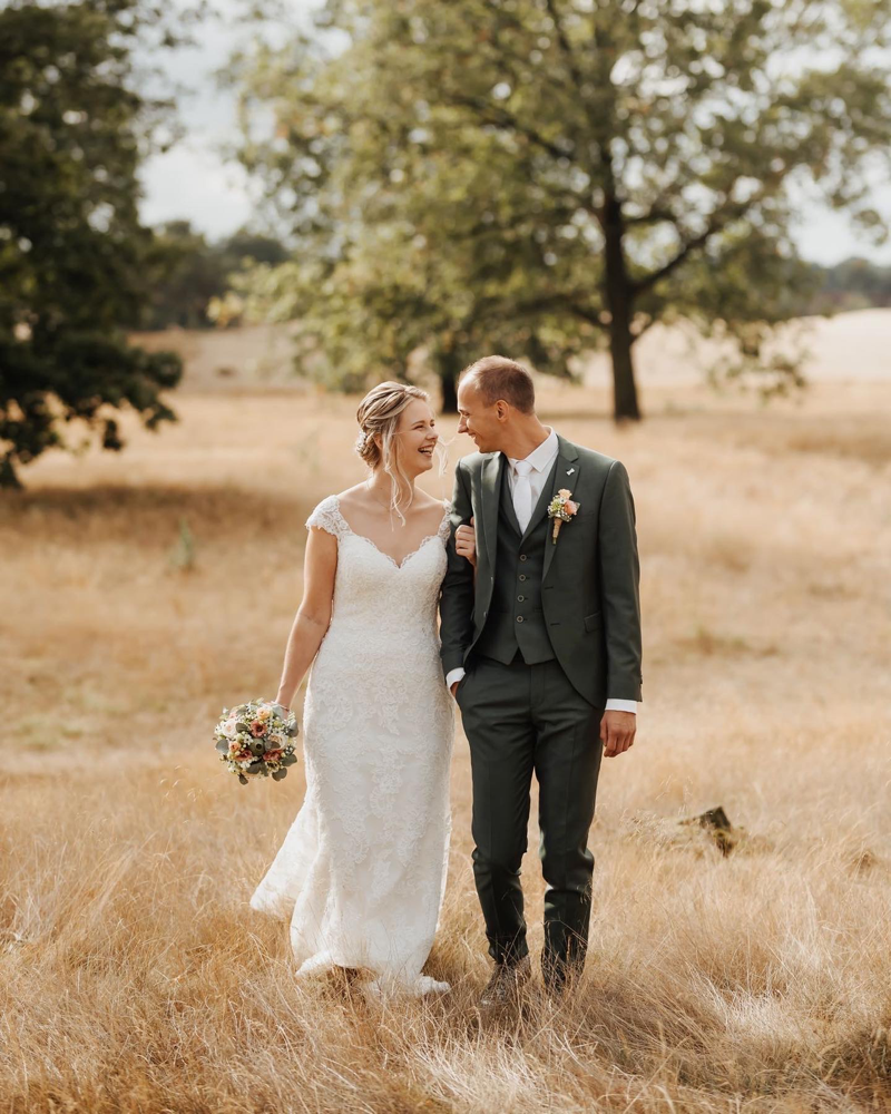 Uitgerekte velden vol graan en een onstuimige lucht dienden als achtergrond voor deze prachtige gestileerde bruiloftsshoot. In de namiddag bewees het zonlicht perfect voor een romantisch plaatje. Het resultaat? Een ontspannen fotoserie met de kracht van de pure natuur en de liefde tussen Robin en Meddy.